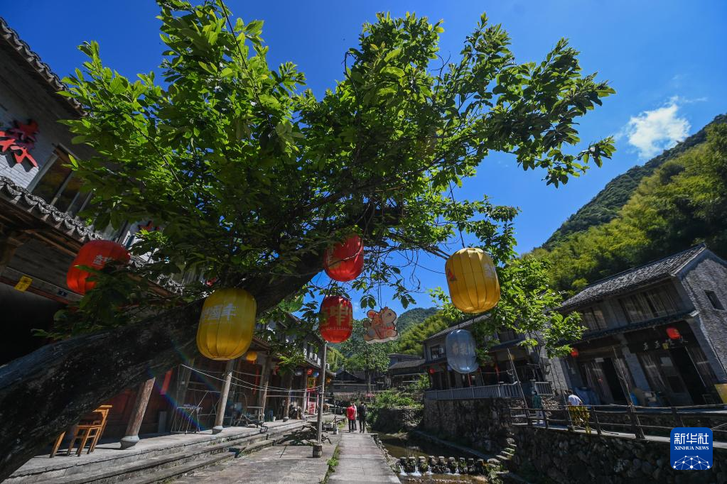 入选第二批中国传统村落名录的浙江省台州市黄岩区屿头乡布袋坑村经环境整体提升成为特色乡村旅游景点(5月30日摄)。2022年开始,屿头乡引进自然造物文化创意团队,通过环境整体提升、核心场景与产品体系重构,为乡村旅游注入新鲜、时尚、更加年轻化的元素,推进特色民宿及农特产品的发展,带动乡村振兴和百姓共富。
