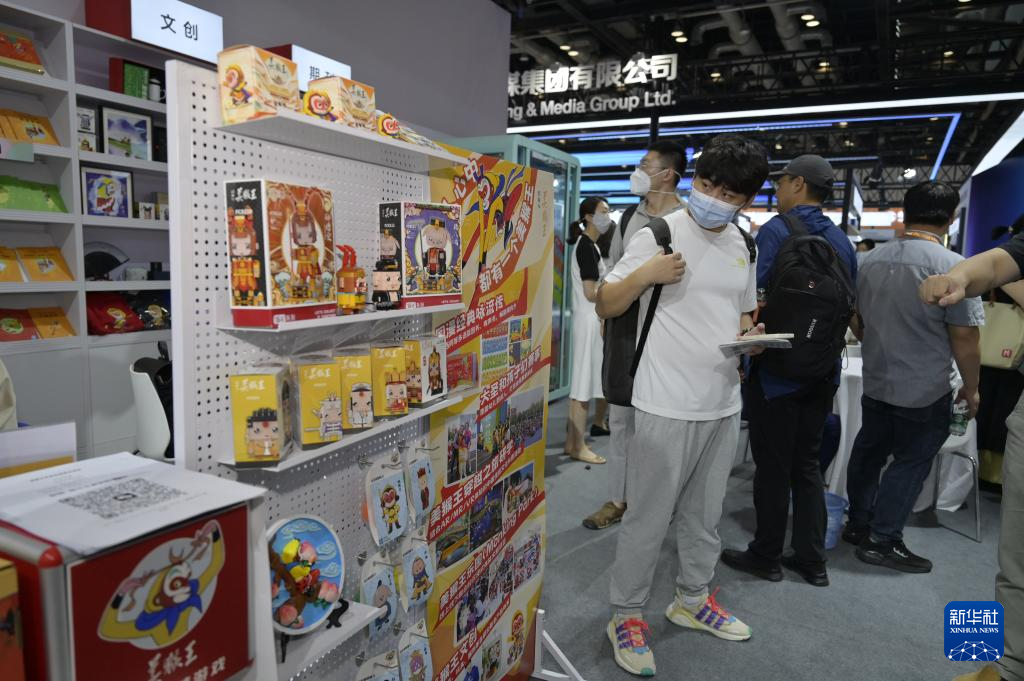 6月16日,观众在北京举行的第29届北京国际图书博览会上观看展示的“美猴王系列”文创产品。