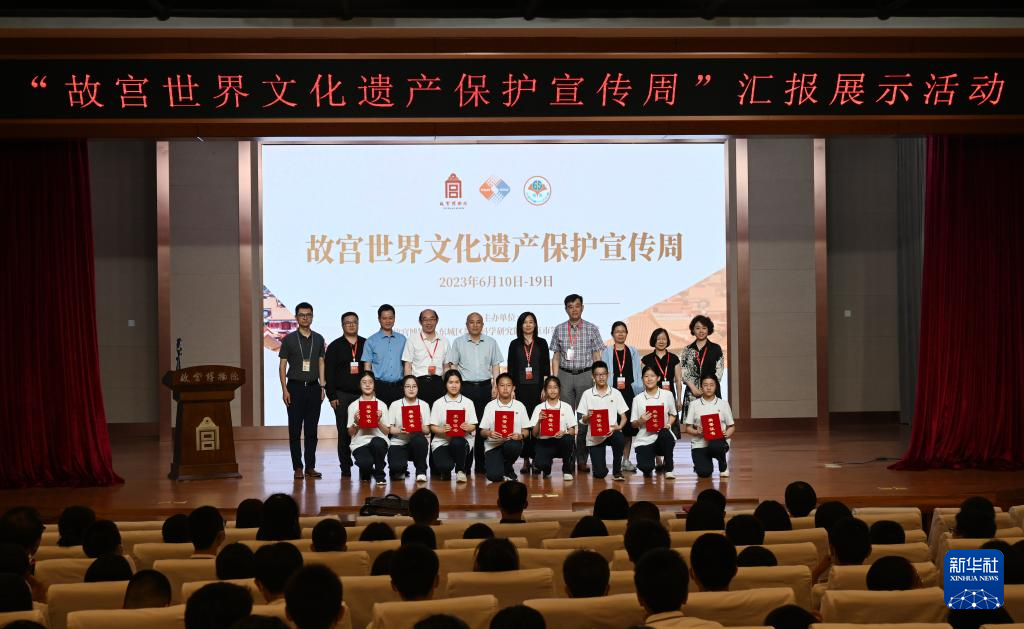 当日,“故宫世界文化遗产保护宣传周”汇报展示活动在北京举行。本次活动由故宫博物院与东城区教育科学研究院、北京市第六十五中学共同主办,于6月10日启动,通过馆校合作系列项目,向青少年阐释文化遗产价值,传播中华优秀传统文化。
