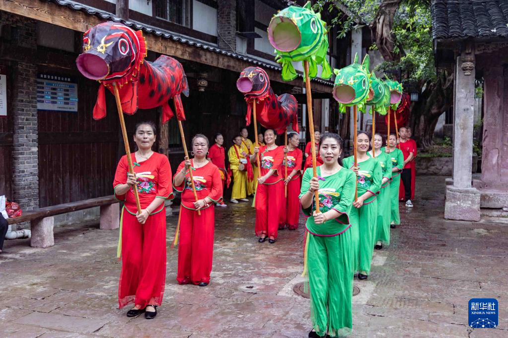 在端午来临之际,重庆市永川区板桥镇的村民开展“我们的节日·端午”主题活动,通过包粽子、制作香囊、舞泥鳅灯、打腰鼓等传统民俗活动迎接佳节。