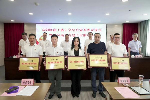 近日,富阳区商(协)会综合党委成立仪式暨全区商会党建工作推进会举行。会上宣布,环山商会成功获评杭州市“四好商会”、2022年度党建工作先进单位。