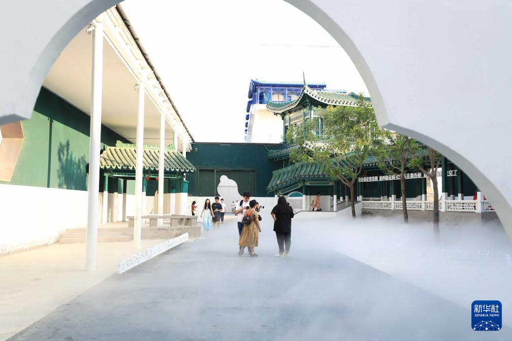 7月23日,游人在“只有红楼梦·戏剧幻城”公园内参观。