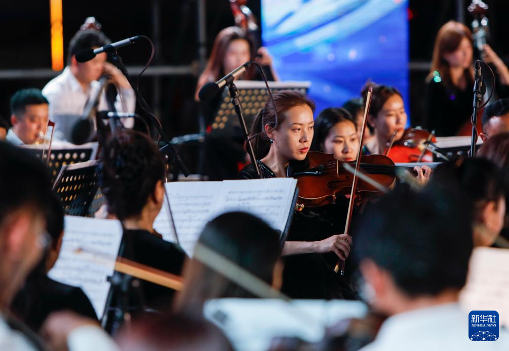 7月31日,来自甘肃省歌剧院、甘肃交响乐团的演奏者们在表演节目。
