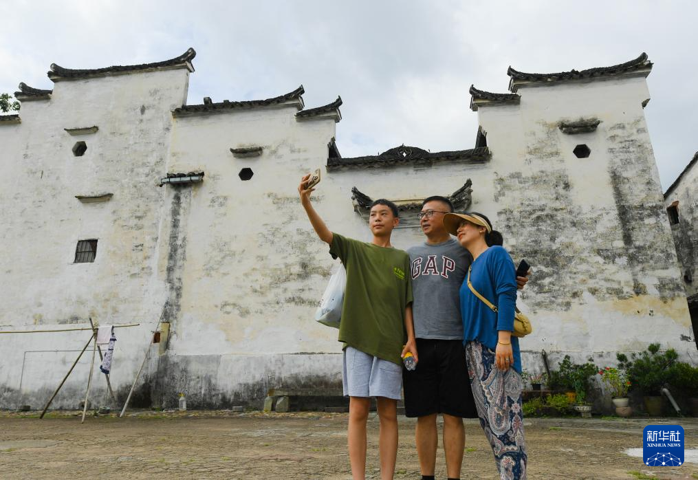 8月1日,游客在诸葛村丞相祠堂参观游览。