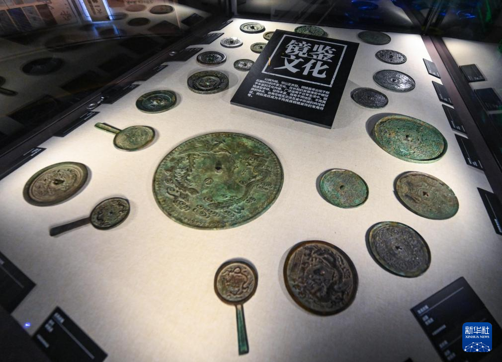 这是“铸牢中华民族共同体意识文物古籍展”展出的铜镜(8月2日摄)。