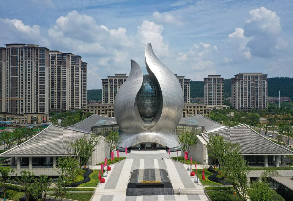 中间高起犹如破土而出的“种子”,被水波状的“叶片”包裹着向天际延伸,合院环绕其四周,仿佛一幅建筑山水的绝妙图景,点亮整个光谷。位于武汉东湖高新区的中国建筑科技馆,在蓝天白云映衬下格外抢眼。暑期,这里成为青少年观众游览、研学的最佳选择之一。