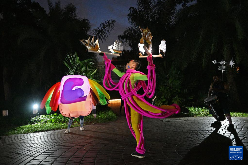 8月16日,表演者在新加坡举行的“新加坡仲夏夜空”艺术活动预展上进行艺术表演。