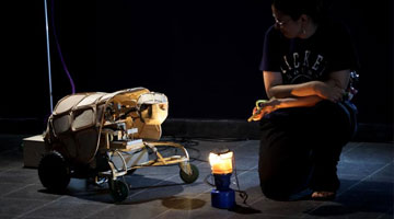 倪朋辉与妻子陈芳在工作室一起探讨砖雕创作构思(8月25日摄)。