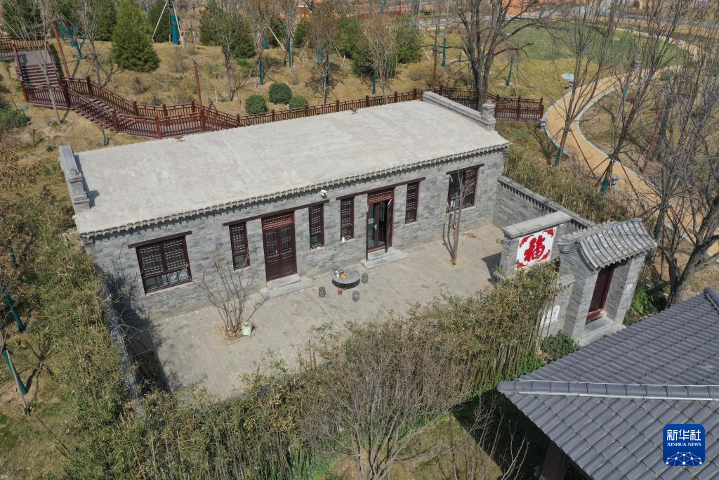 位于雄安新区郊野公园中的“金玉璞家老宅”(无人机照片)。新华社记者朱旭东 摄