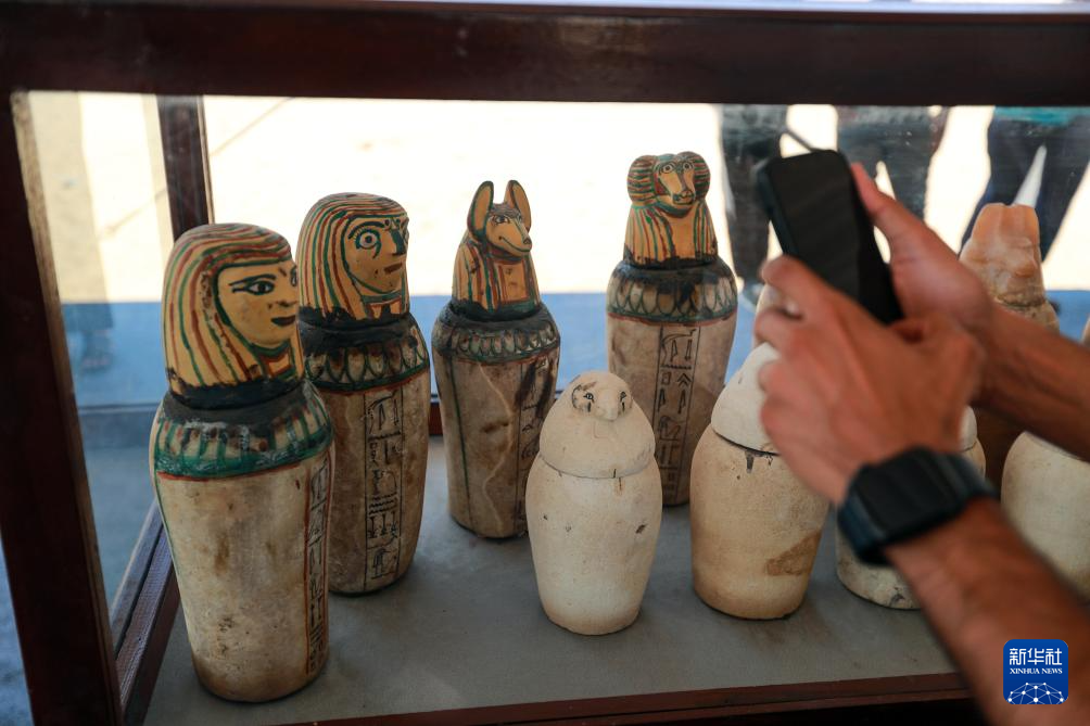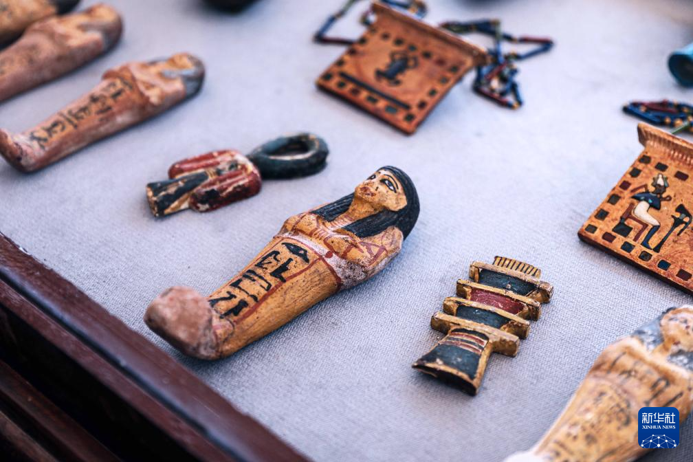 这是10月15日在埃及明亚省考古现场拍摄的出土文物。