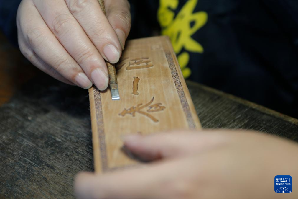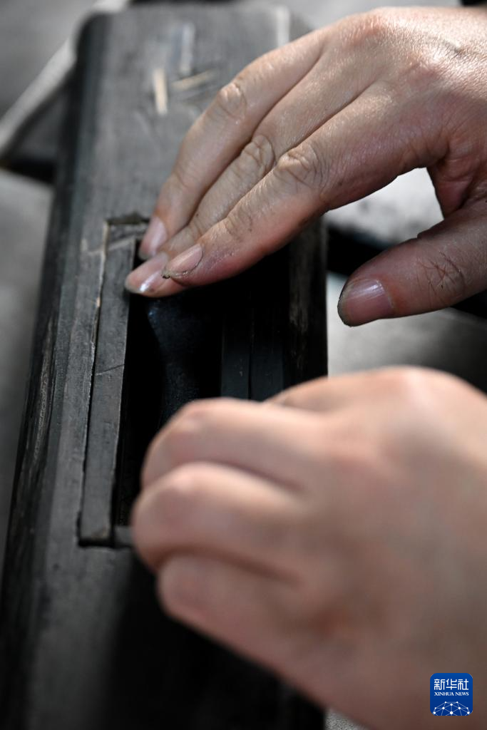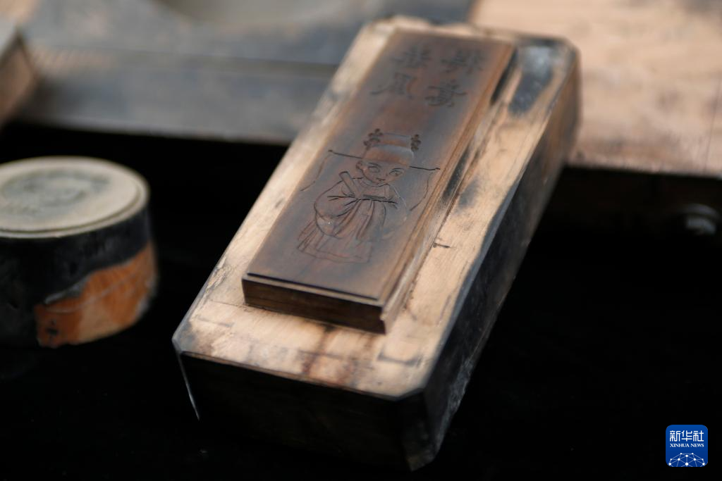 10月24日,在安徽省黄山市歙县老胡开文墨业有限公司,周健在雕刻墨模。