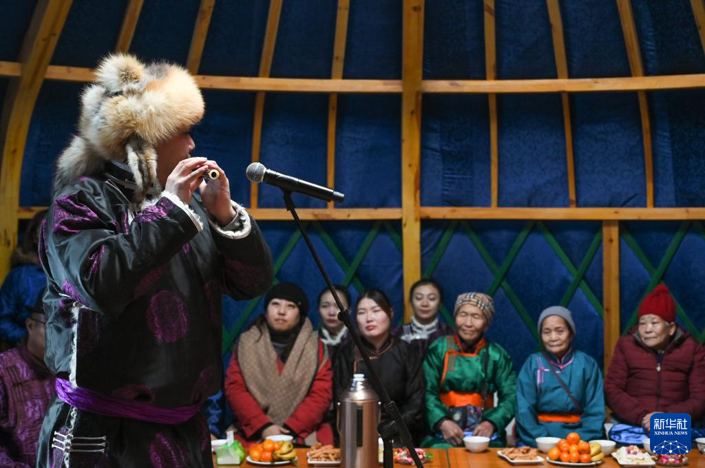 冬日里,内蒙古锡林郭勒盟苏尼特右旗乌兰牧骑的队员来到阿其图乌拉苏木,为当地牧民送去独具特色的文艺表演,也为冬日的草原增添色彩。