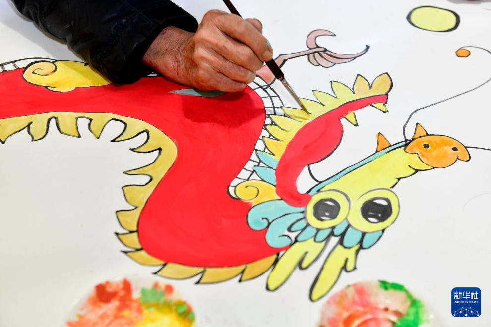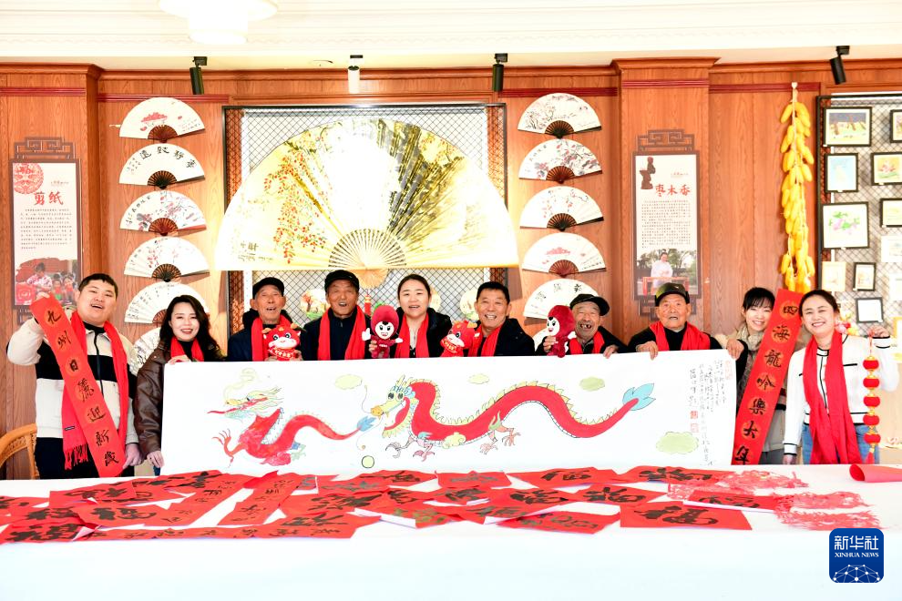 当日,山东省乐陵市组织农民画画师、剪纸老师、书法老师等文艺志愿者来到朱集镇,创作“龙”元素贺岁作品,迎接农历龙年的到来,为群众送上新春祝福。