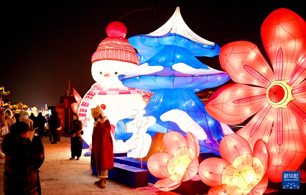 2月2日,游客在西安大唐芙蓉园内观赏大型花灯。
