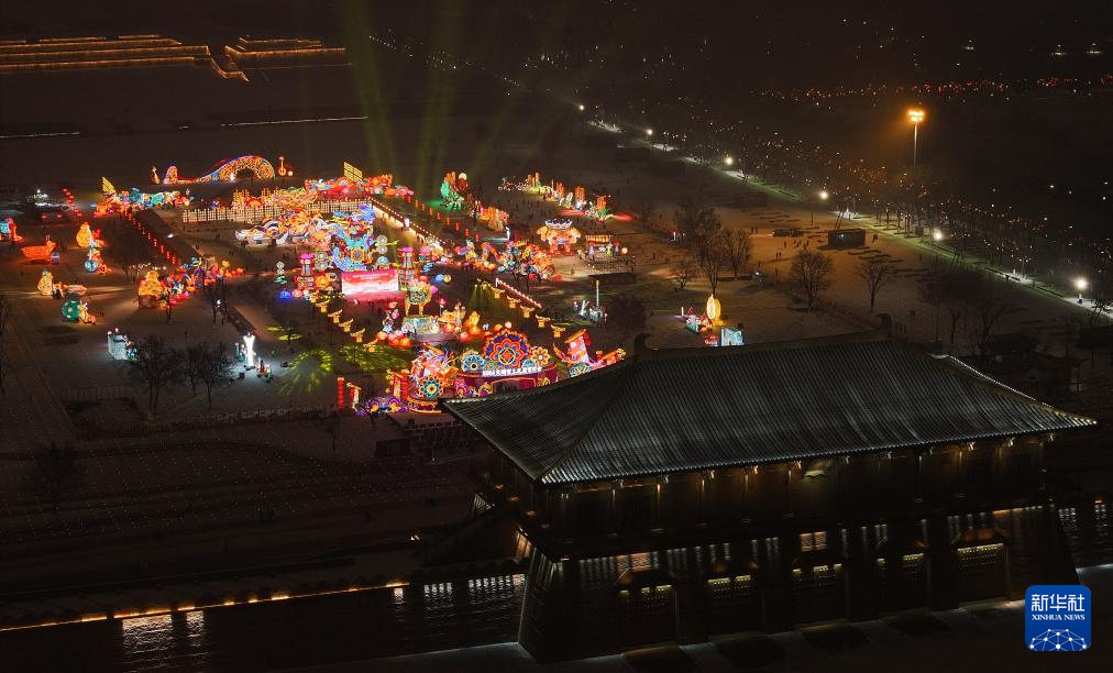 这是2月2日拍摄的西安城墙新春灯会现场(无人机照片)。
