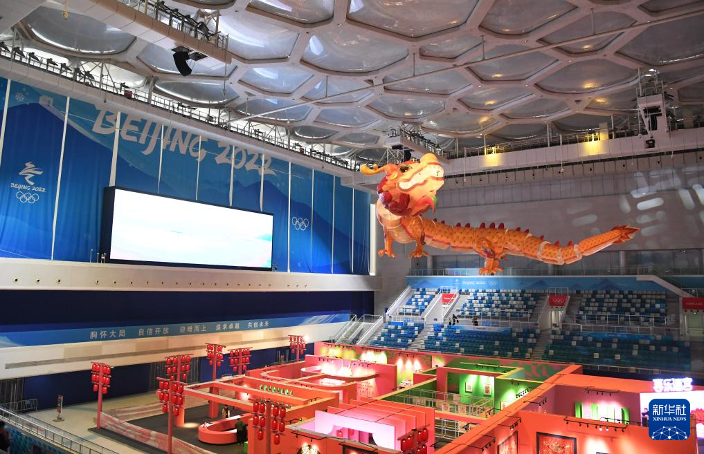 这是2月3日在国家游泳中心“水立方”拍摄的“龙耀水立方,喜乐过龙年”跨年展览。