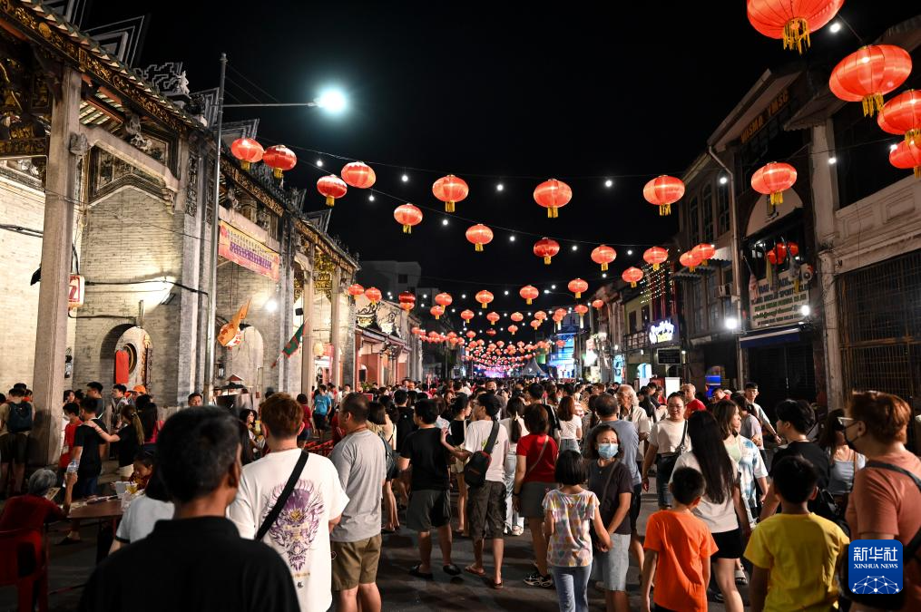 大年初九,在马来西亚槟城州首府乔治市古迹区,一年一度的槟城庙会如期举行。当地民众与游客纷纷前来体验传统文化,感受热情洋溢的春节氛围。