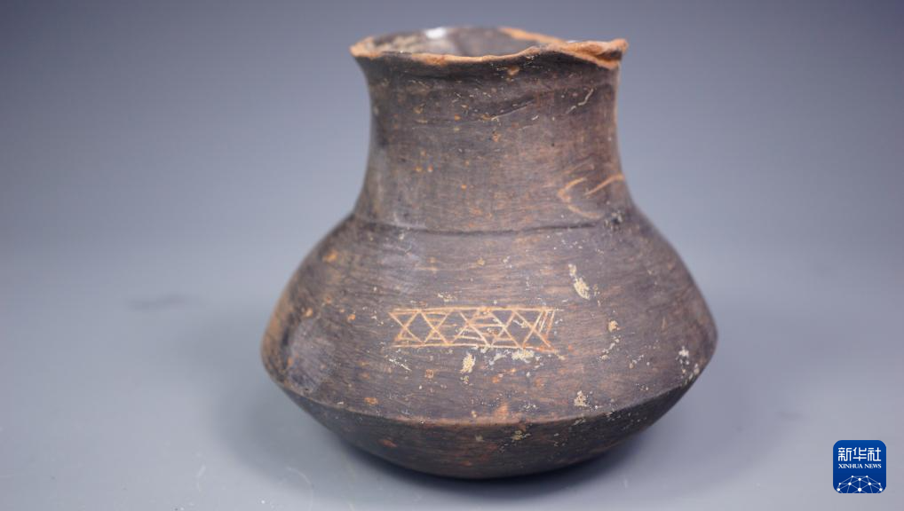 图为磨盘山遗址出土的崧泽文化时期带有几何刻划的壶。