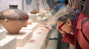 3月23日,一名观众在法国巴黎举办的“甲子情深——中法百姓故事展”上参观。