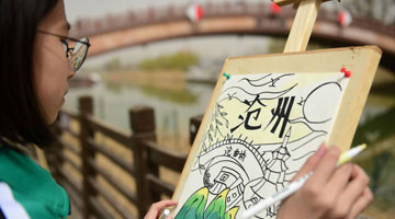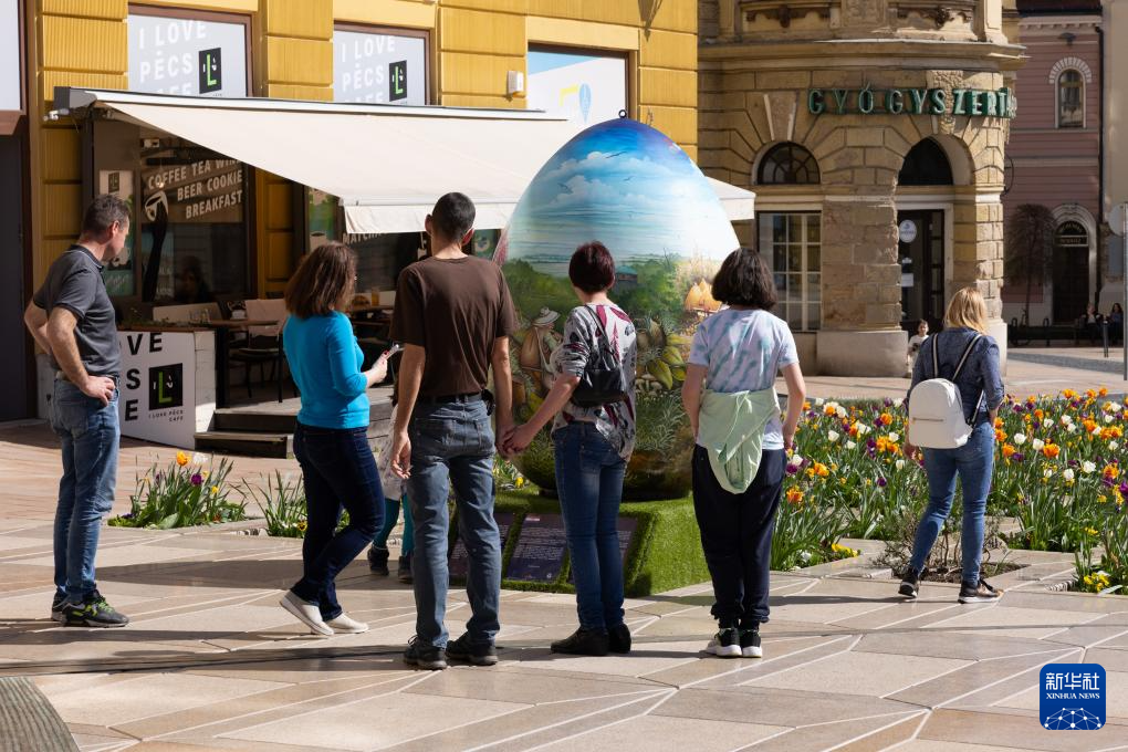 3月30日,人们在匈牙利南部城市佩奇街头参观复活节巨型彩蛋。新华社发(弗尔季·奥蒂洛摄)