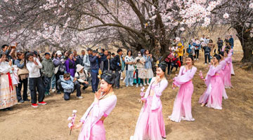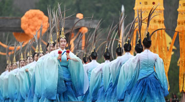 4月4日,水落坡镇乡村社火队队员在演绎鲁北乡村的播种场景。