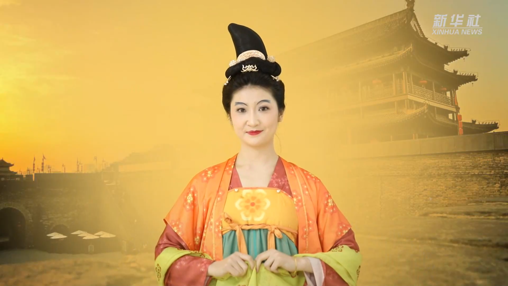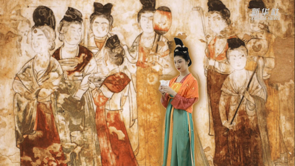 出土于唐乾陵永泰公主墓的《宫女图》是唐墓壁画中的精品,画中九位风姿绰约的宫女体现出大唐崇尚雍容明媚的女子风尚。画作色彩丰富,线条流畅,人物装束、服饰具有很高的史料价值。近年来,陕西服装工程学院团队通过提取壁画中的服饰色彩、款式等,艺术再现了唐代女子的流行服饰。