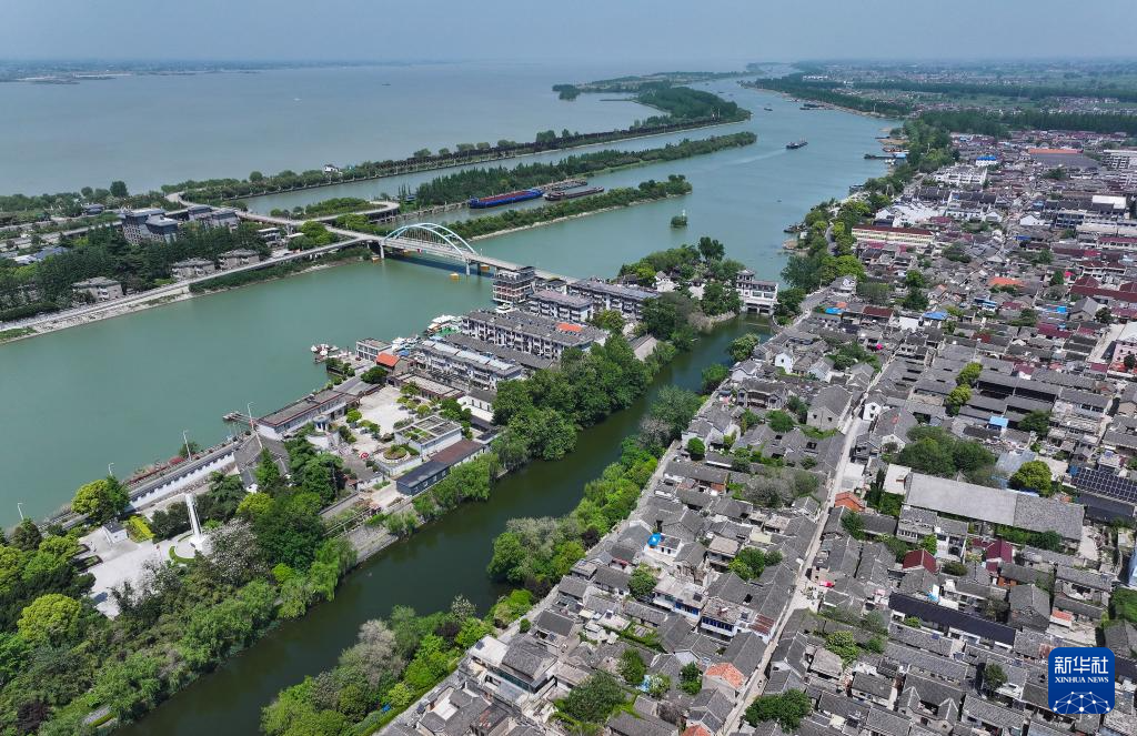 位于扬州江都区的邵伯古镇(无人机照片,4月25日摄)。