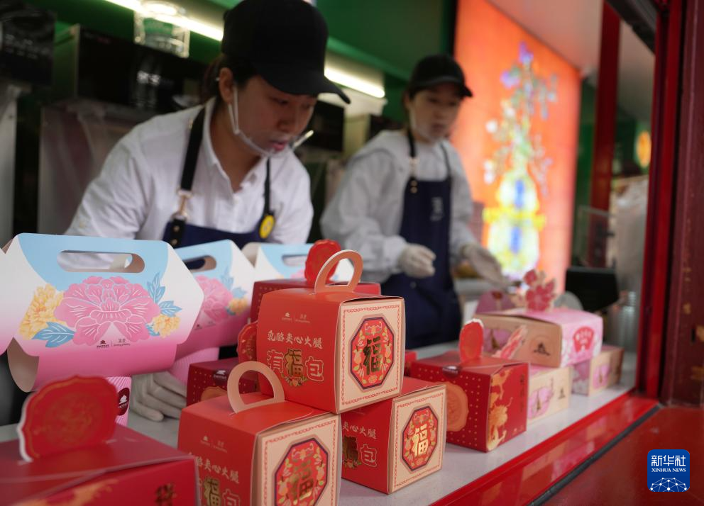 5月10日,在沈阳故宫,工作人员在准备乳酪包等“美食文创”新品。