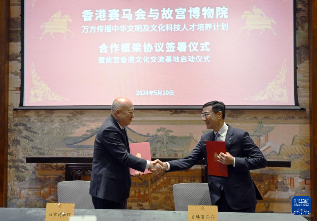 当日,香港赛马会与故宫博物院合作框架协议签署仪式暨“故宫香港文化交流基地”启动仪式在北京故宫博物院举行。根据协议,由香港赛马会和其慈善信托基金共同成立的公益慈善研究院将资助约3.71亿元人民币,支持故宫博物院于2024年至2028年开展“万方传播中华文明及文化科技人才培养”计划。该计划涉及古建修缮、展览展示、人才培养、学术交流、考古研究、社会教育等方面。