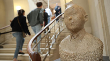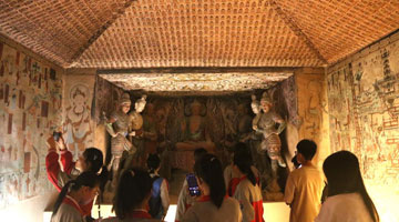 2023年9月16日,外国留学生在西安未央区汉长安城遗址内的汉长安城历史文化与遗址保护展示厅参观。新华社记者刘潇 摄