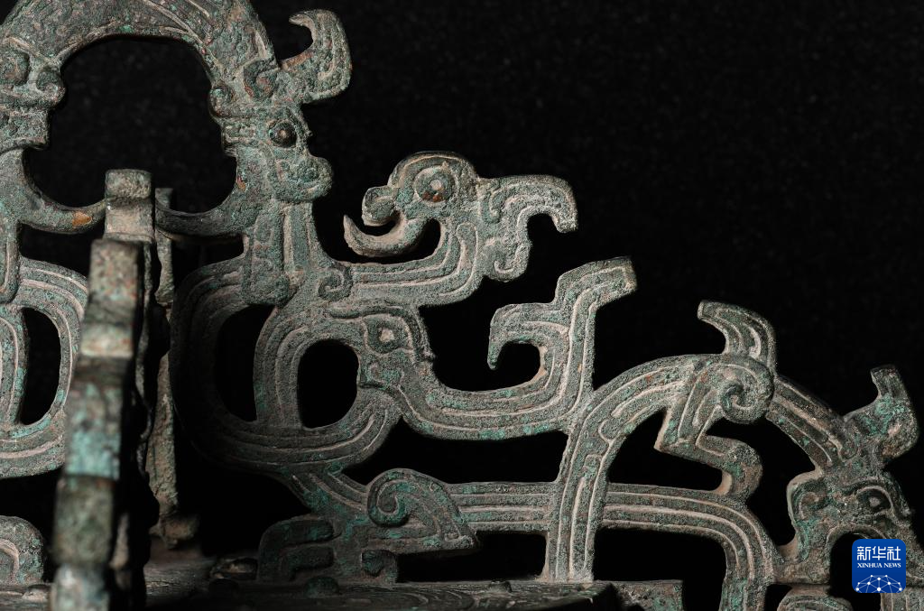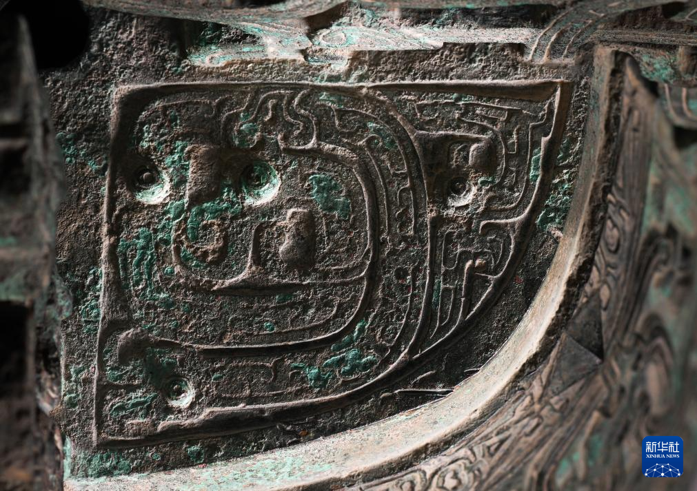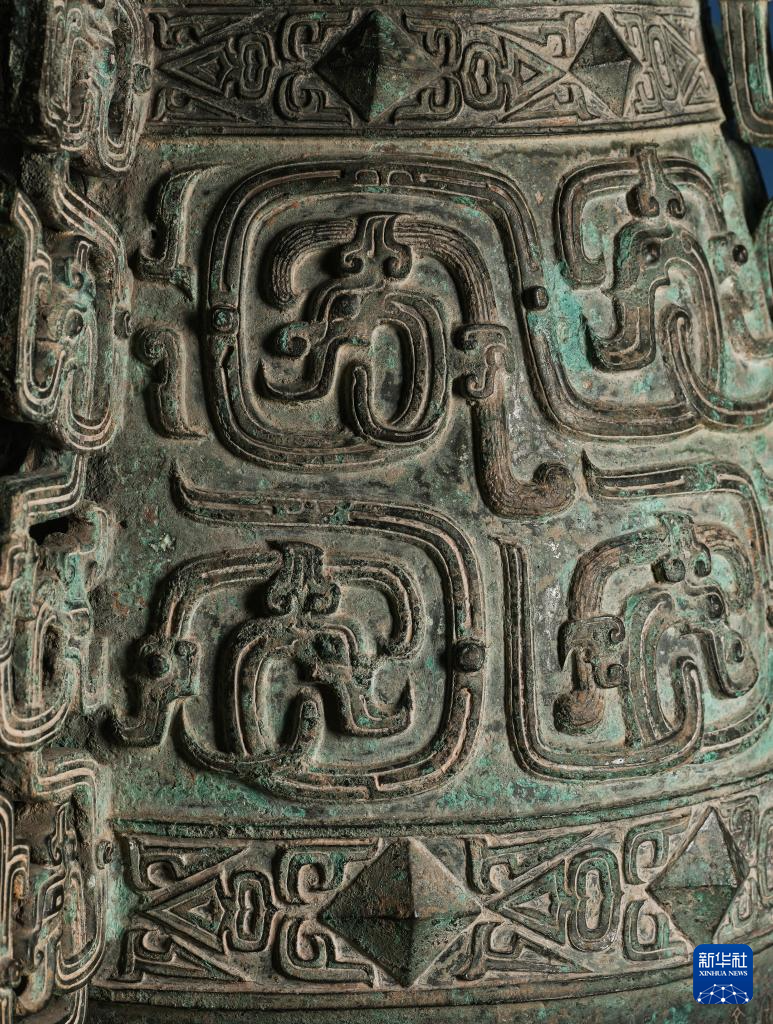 秦公镈(一号镈)“扉棱”上的龙纹特写(2024年1月23日摄)。