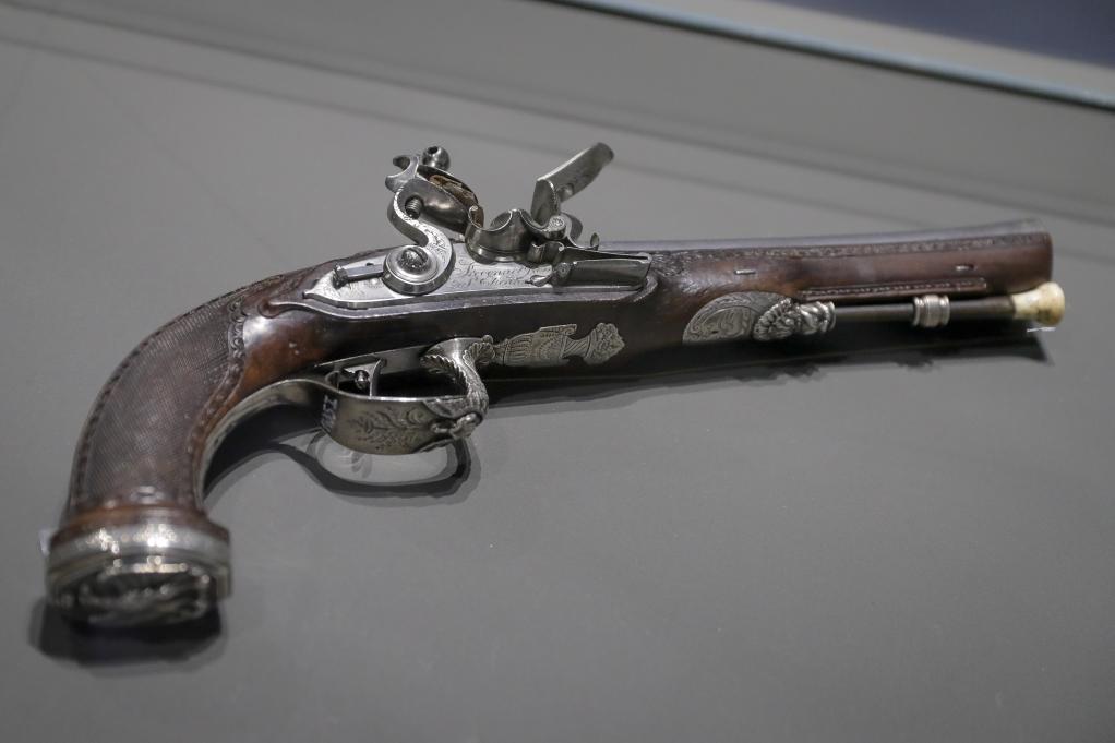 拍卖行专家让-皮埃尔·奥塞纳介绍,拿破仑当时非常消沉,想用这两把枪自杀,但他的侍从提前从枪里取走了火药,使他自杀未遂。拿破仑随后改为服毒药自杀,但因呕吐捡回一条性命。活下来的拿破仑把枪送给那名侍从,以示谢意。此后,那两把枪成为侍从家的传家宝。