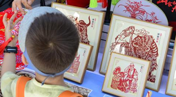 7月19日,邱恒勇展示他创作的木活字印刷的百福图。