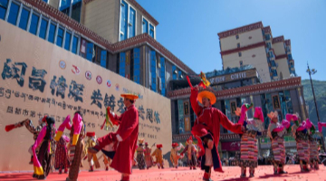 8月18日,在巴西圣保罗,西北民族大学艺术团成员在“中国的色彩:民族万花筒”晚会上表演舞蹈。