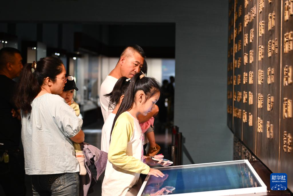 9月1日,游客在宁夏博物馆了解西夏文字。