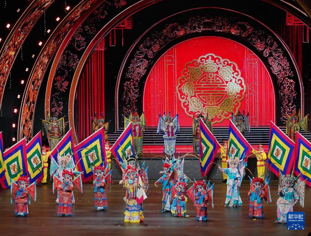 9月19日,演职人员在北京文化论坛专场文艺演出中表演戏曲联唱《巾帼英雄穆桂英》。