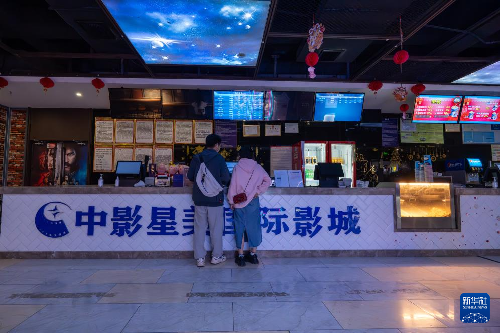 10月7日,市民在浙江省嘉兴市一家影城取票准备观影。