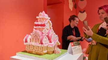 10月13日,在“守护雨林家园——海南热带雨林国家公园建设主题展”现场,观众与海南热带雨林背景墙留影。