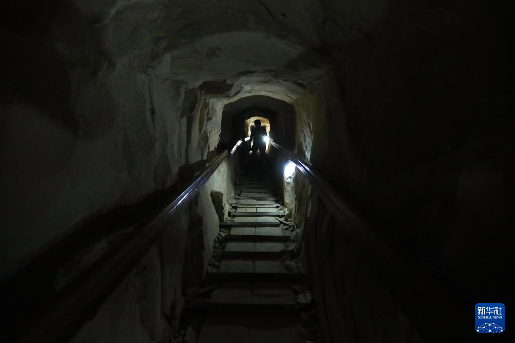 10月16日,游客在位于埃及贝尼苏韦夫省的美杜姆金字塔内参观。