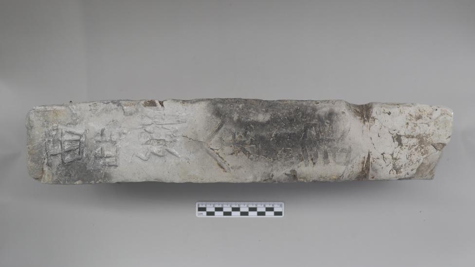 出土遗物中的模印铭文砖。宁波市文化遗产管理研究院供图