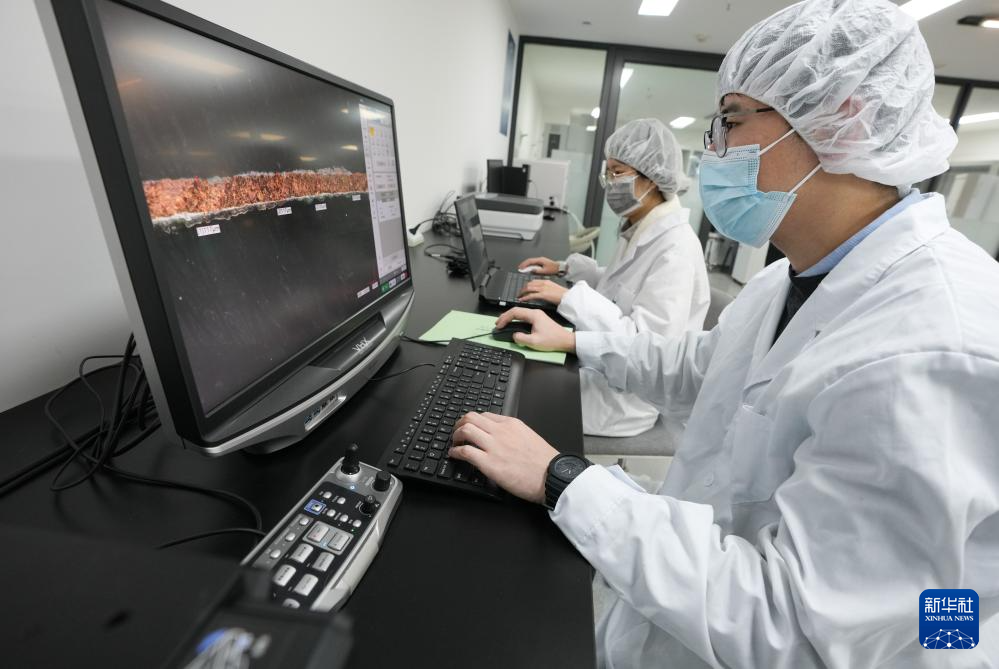 12月16日,在三星堆研究院,考古专家在查看青铜器金属含量样本。