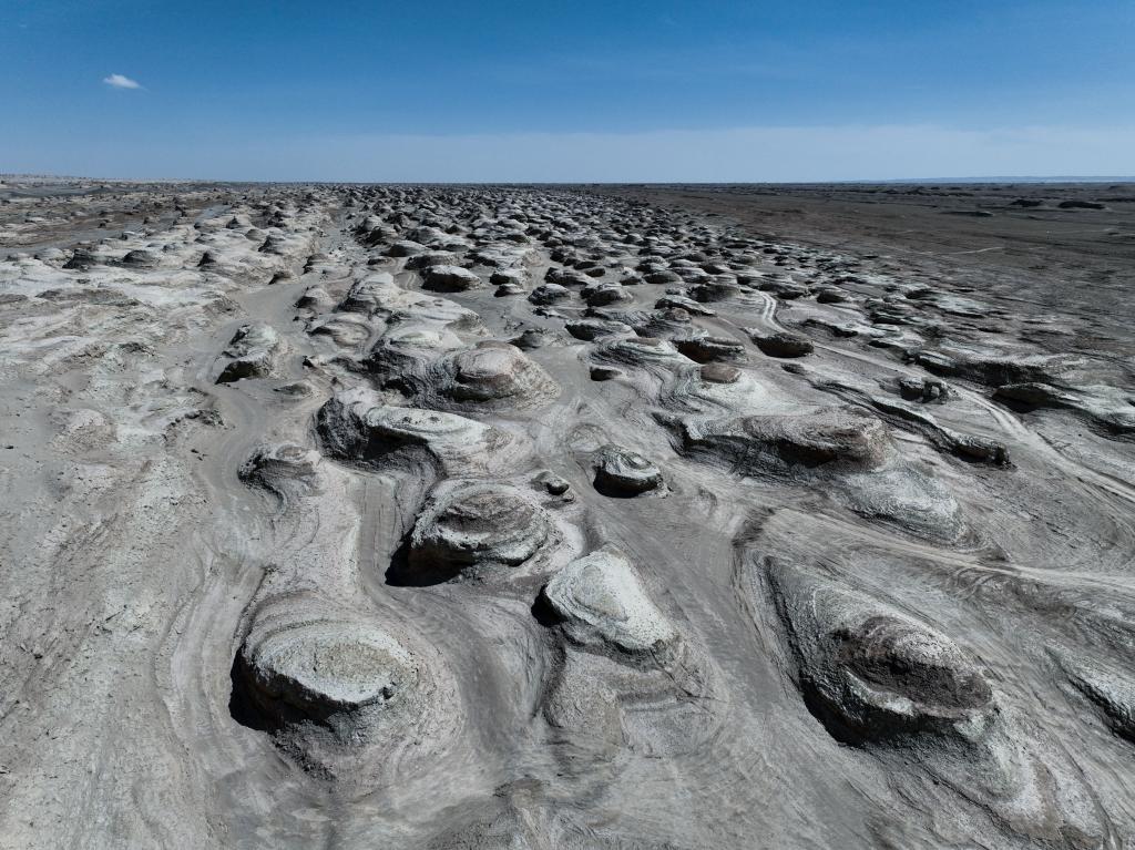 茫崖俄博梁雅丹地貌宛如火星表面(无人机照片)。新华社记者 陈杰 摄