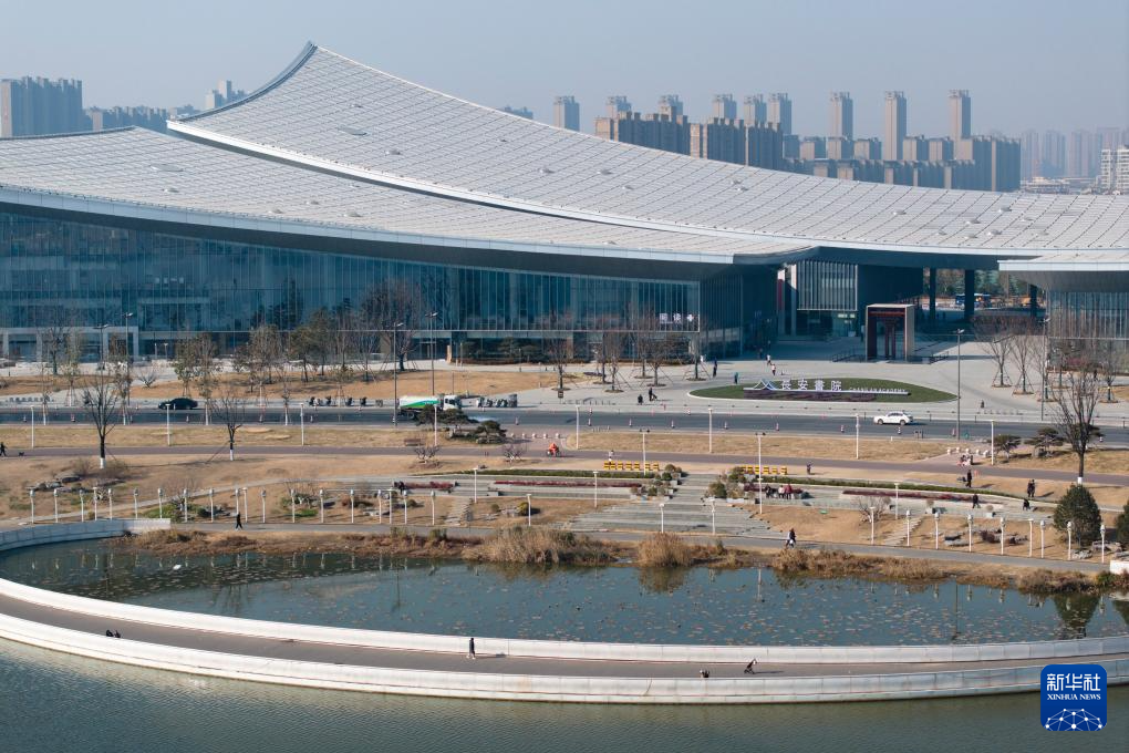 1月1日拍摄的新落成的长安云“一带一路”城市展示体验中心(无人机照片)。