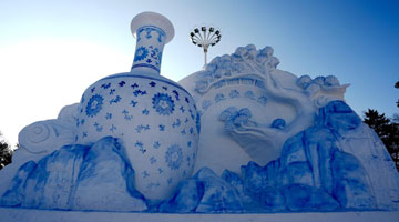 1月6日,工人在黄山徽匠园林古建有限公司厂区搭建徽派仿古建筑。