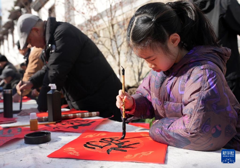 当日,杭州市西湖区第四届新春文化集在北山街道举行。一些小朋友在家长陪伴下前来感受非遗的魅力,迎接新春佳节。
