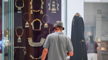 1月9日,在位于安徽省黄山市屯溪区的程大位珠算博物馆,汪素秋展示一款算盘。