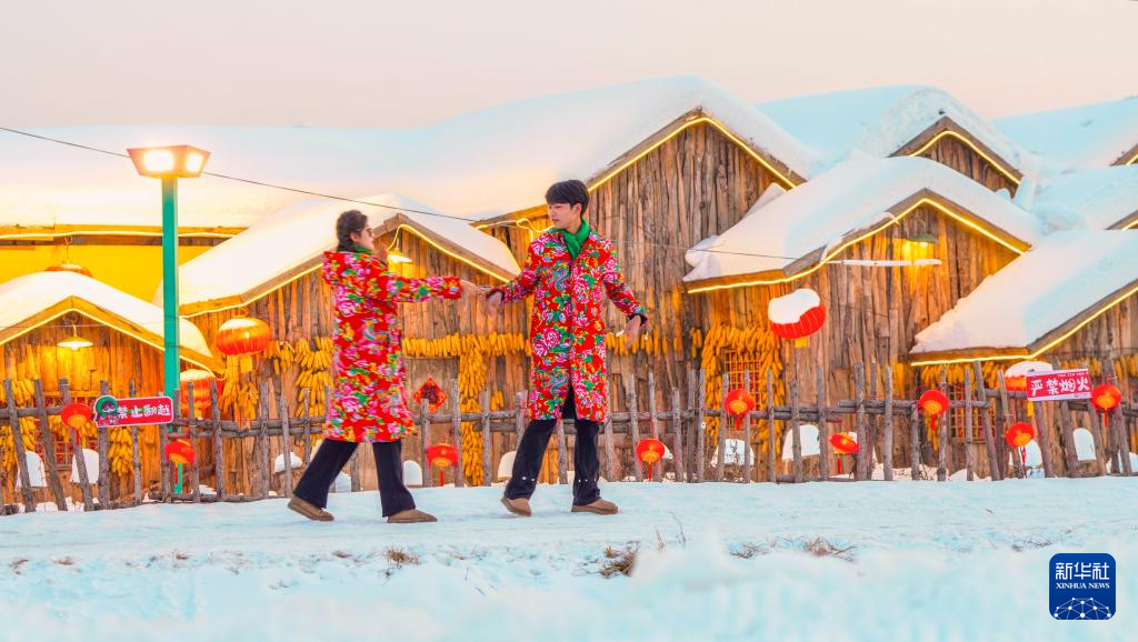 1月20日晚,游客在河北省遵化市团瓢庄镇山里各庄村雪乡景区游玩。
