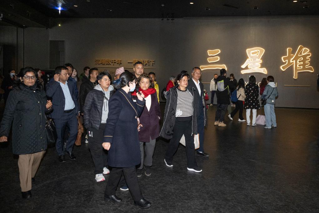尼泊尔大会党干部考察团成员在四川省广汉市三星堆博物馆参观(2月26日摄)。新华社记者 于艾岑 摄