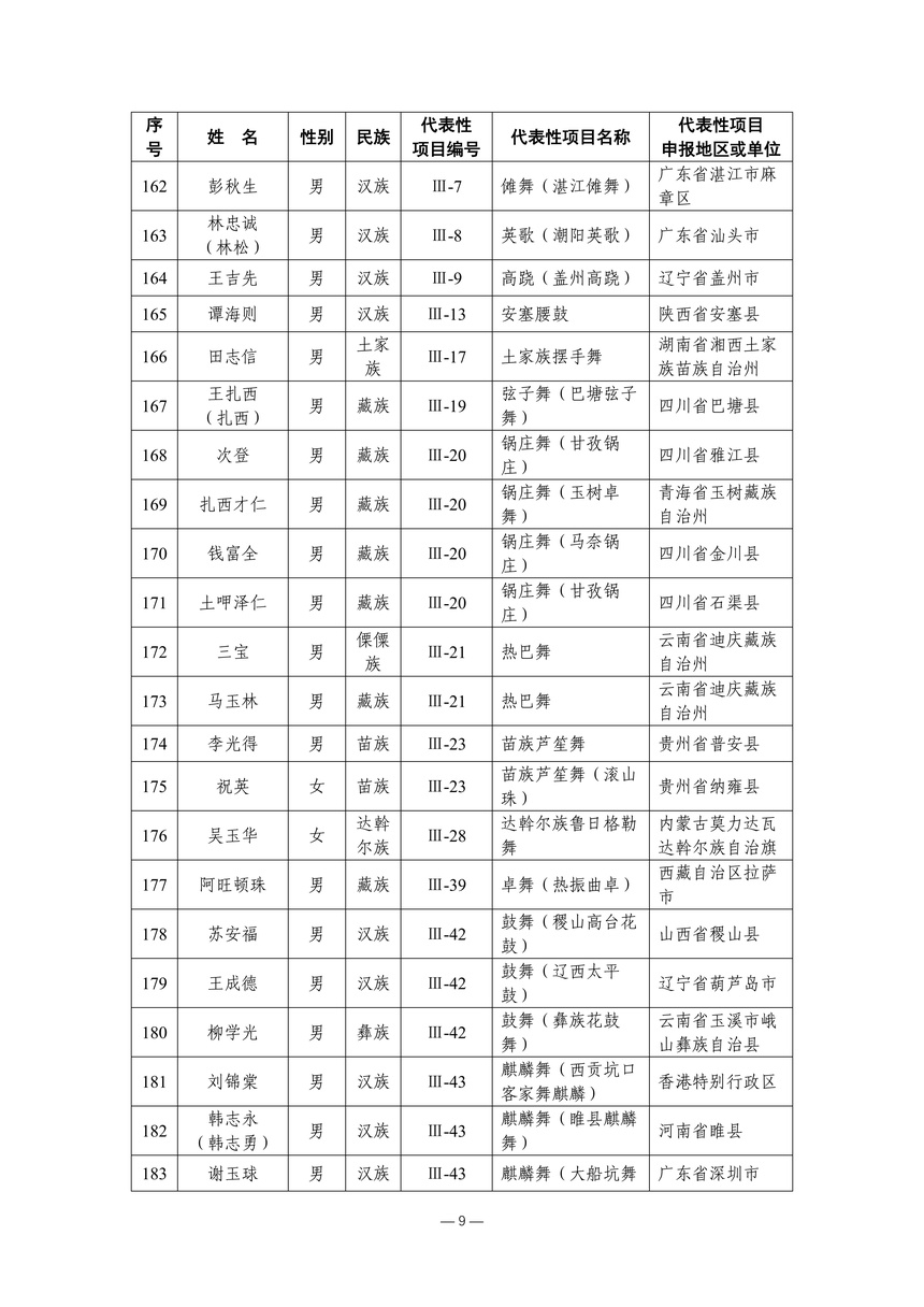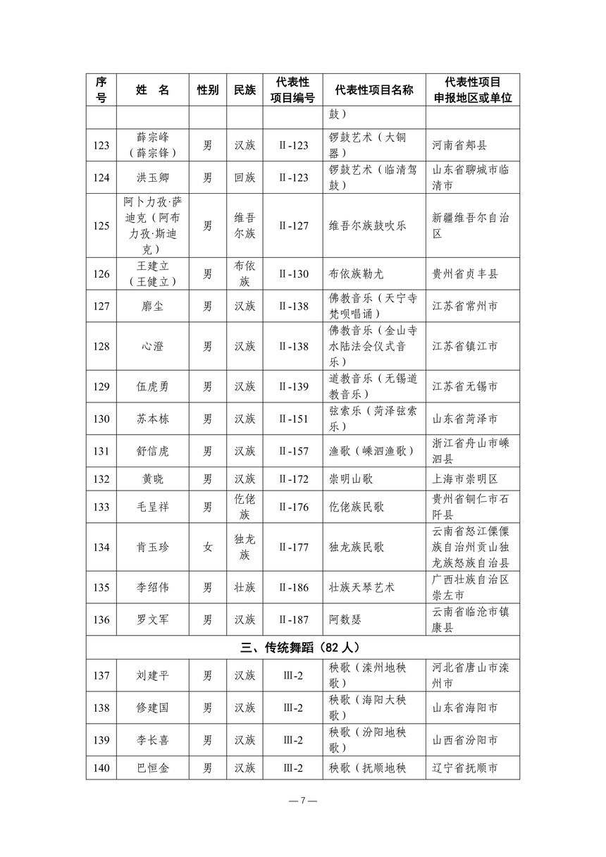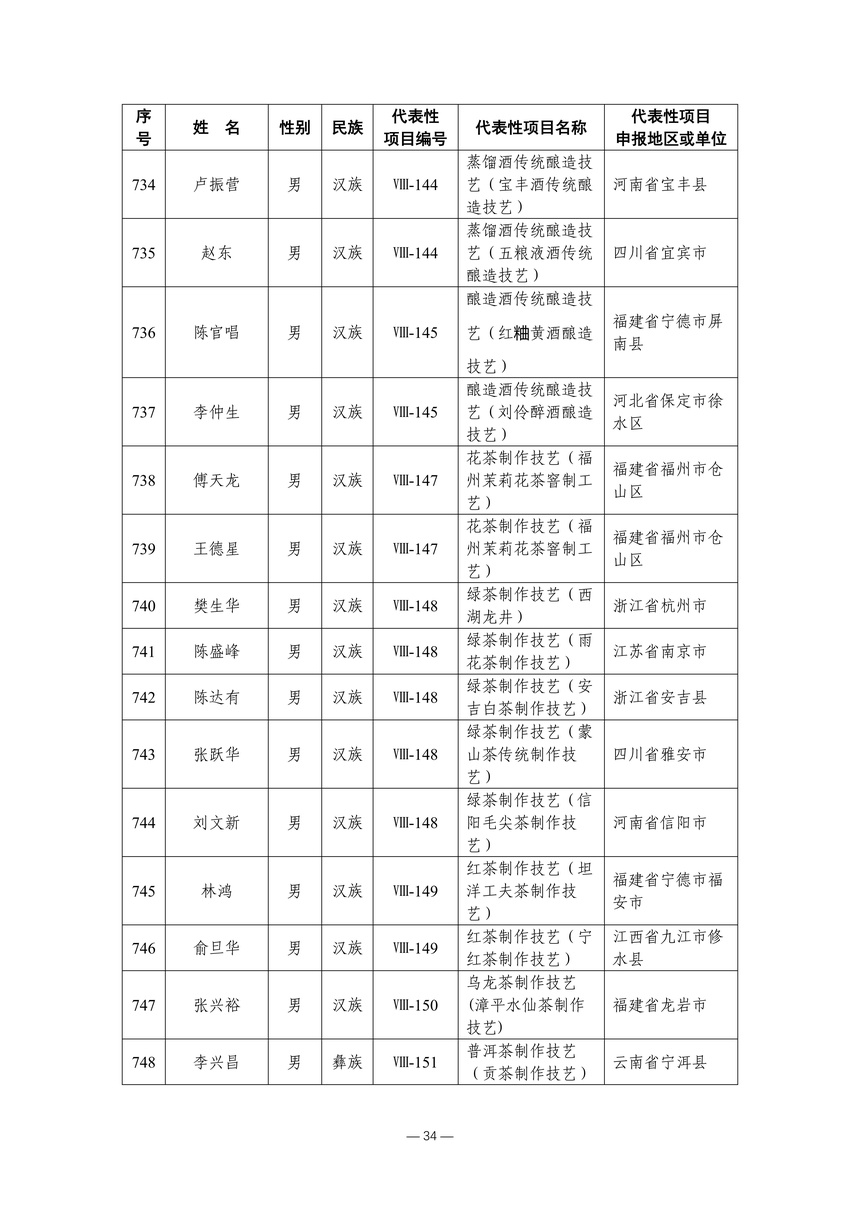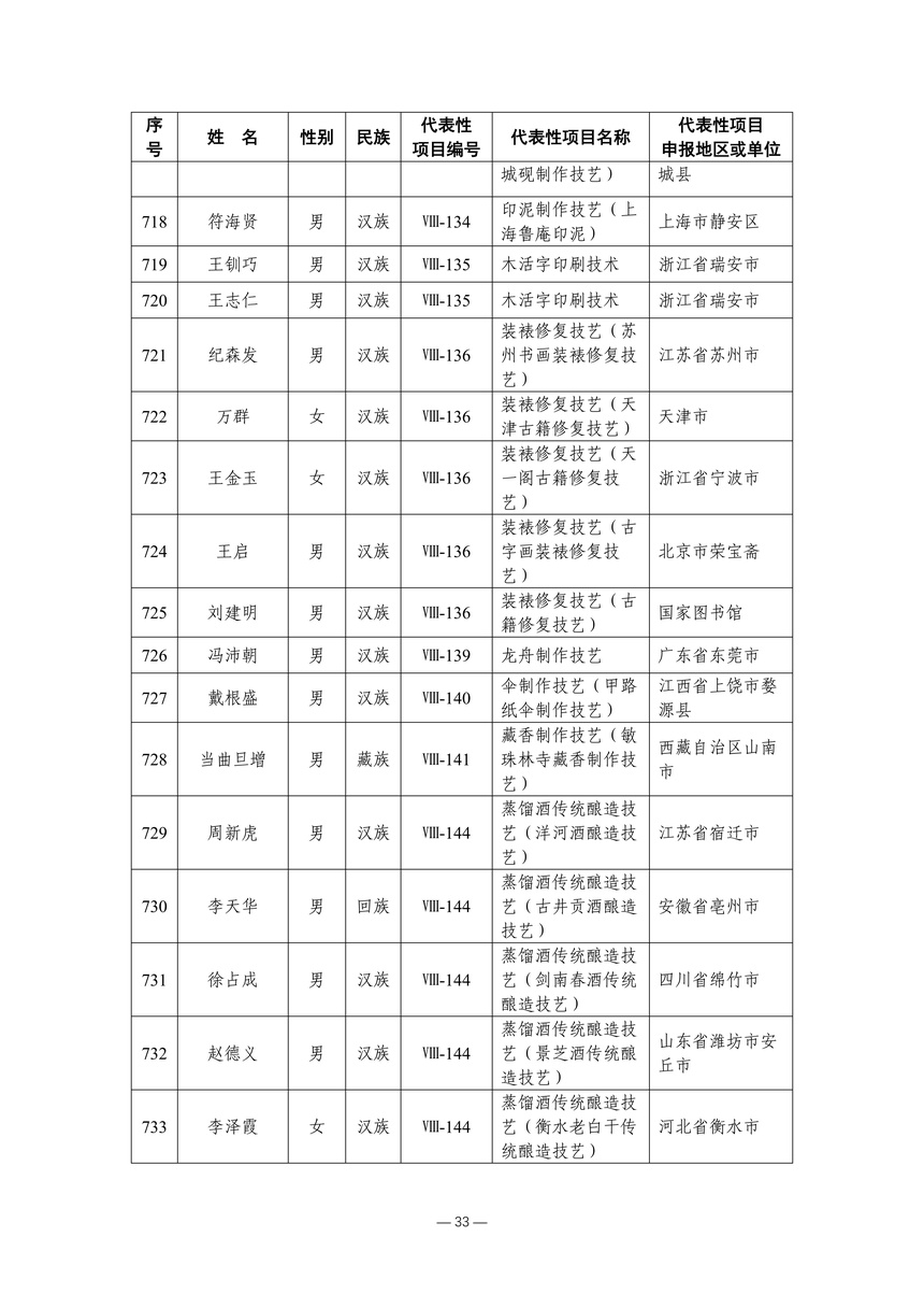 习近平总书记高度重视非物质文化遗产保护传承,强调要积极培养传承人,一代一代接下来、传下去。近年来,各地高度重视非物质文化遗产代表性传承人队伍建设,涌现出一大批德艺双馨、技艺精湛,在非物质文化遗产保护传承中发挥重要作用的典型代表。根据《中华人民共和国非物质文化遗产法》及《国家级非物质文化遗产代表性传承人认定与管理办法》有关规定,为加强非物质文化遗产传承人队伍建设,进一步提升非物质文化遗产系统性保护能力水平,保护和传承好非物质文化遗产,文化和旅游部组织开展第六批国家级非物质文化遗产代表性传承人认定工作。经推荐申报、材料复核、专家初评、社会公示、评审委员会审议等程序,确定了第六批国家级非物质文化遗产代表性传承人名单(942人),现予以公布。