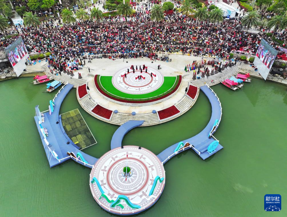 这是3月29日拍摄的广西南宁园博园“三月三”巡游(无人机照片)。新华社记者 周华 摄